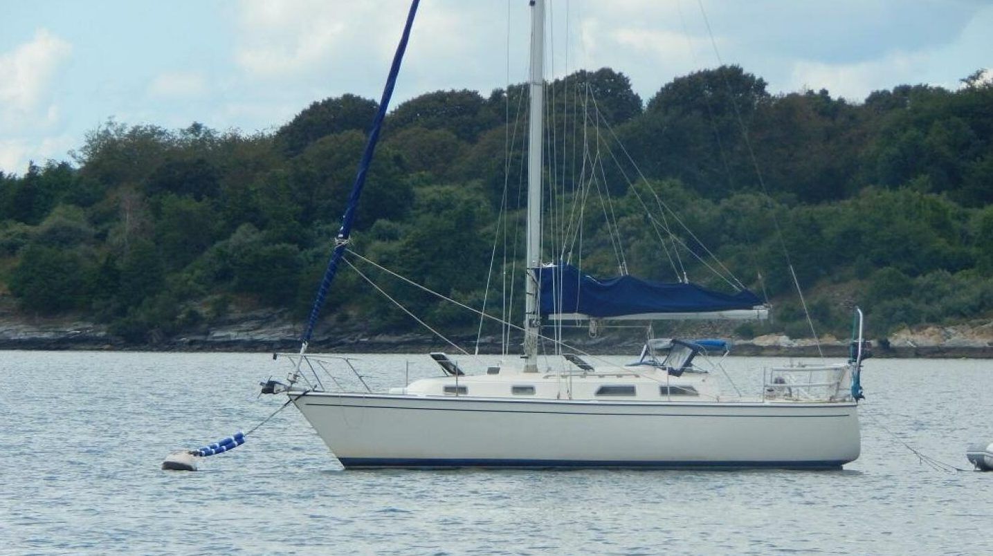 El Frankly Speaking es un Pearson 34. Un velero de quilla fija, estable, con buena eslora y comportamiento predecible en aguas abiertas. No es un velero de escuela ni un catamarán de crucero masivo — es un barco de navegación real, de los que salen a mar abierto.